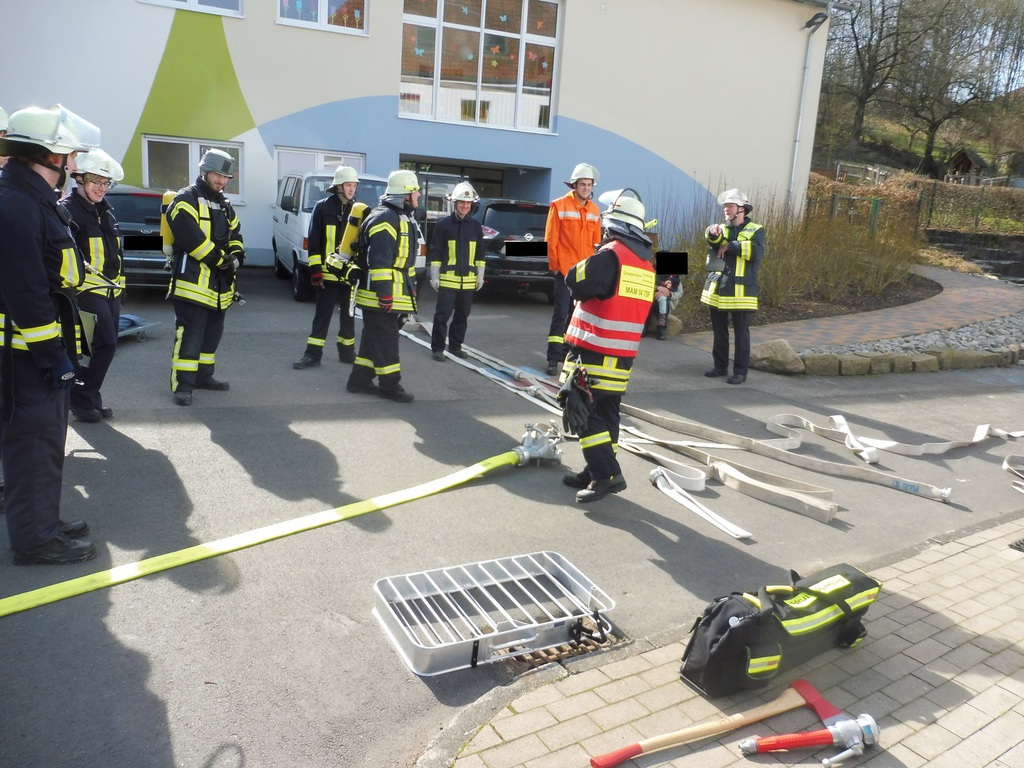 Dazu wurden an verschiedenen Stationen Übungen durchgeführt, die dann durch mehrere Löschgruppen zusammen abgearbeitet wurden.