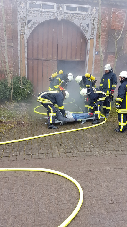 Ebenso wurde die Durchführung eines Brandeinsatzes geübt, Schauplatz hierfür war dieses Jahr ein altes Bauernhaus.