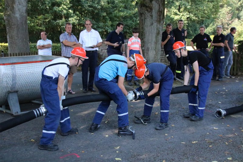 Wie immer eröffnete die Jugendfeuerwehr den Stadtpokal. Aufgabe für alle Gruppen war es aus offenem Gewässer eine Wasserversorgung bis zum Verteiler aufzubauen. Die einzelnen Trupps mussten dann mit drei C - Strahlrohren die aufgestellten Zielfeuer löschen.